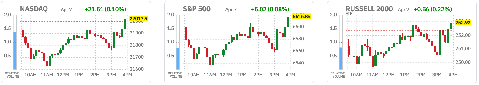 Similar to the S&P 500 and Nasdaq Composite, the Russell 2000 (+0.2%) and S&P Mid Cap 400 (+0.1%) eked out a gain as the broader market rallied in the final hour of the session.