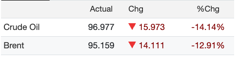 - Crude Oil +0.60 @ 112.85