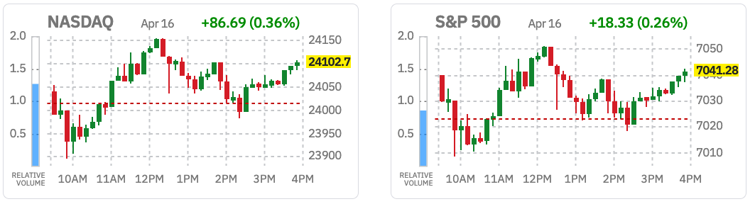 - Nasdaq closed higher at 24102 (+0.36%).