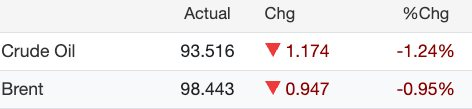 - Crude Oil +3.41 @ 94.71
