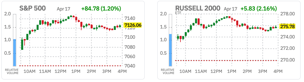 Outside of the S&P 500, the Russell 2000 (+1.4%) captured another solid gain as the market leans into a risk-on tone, while the S&P Mid Cap 400 (+0.5%) finished with a more modest gain.