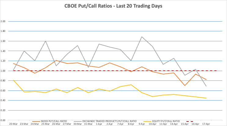 As a common practice among professionals, it is worth noting that the big-money indicators are the Index and ETF Put/Call Ratios, while Equity Put/Call Ratios are mostly for novice/amateur participation.