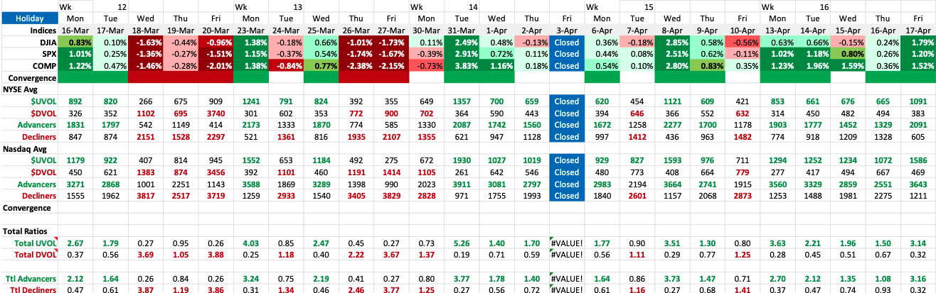 Week 16 lives up to its reputation as being the most bullish week of the year as the Bulls overran the Bears this week in terms of UVOL and Advancers.