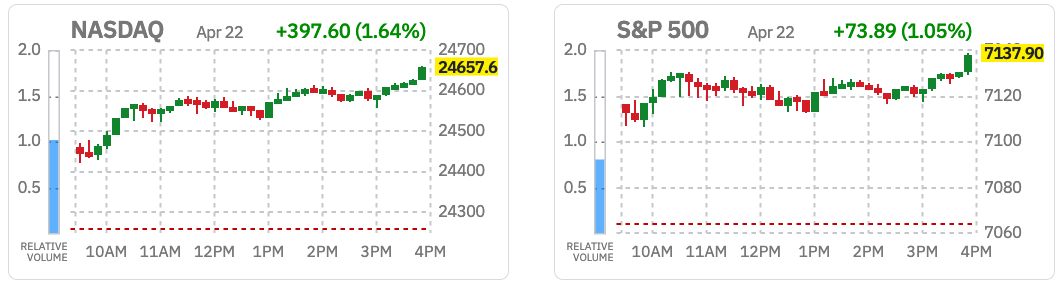 US index futures were little changed on Thursday after the S&P 500 and Nasdaq Composite closed at fresh record highs in the prior session, buoyed by strong corporate earnings and an extension of the US-Iran ceasefire. President Donald Trump said the current truce would remain in place indefinitely as Washington awaits a new peace proposal from Iran, although Tehran has indicated it does not plan to engage in negotiations in the near term. In regular trading on Wednesday, the S&P 500 and Nasdaq Composite advanced 1.05% and 1.64%, respectively, while the Dow added 0.69%. Market sentiment has been supported by a solid earnings season, with 3 out of 4 S&P 500 companies reporting so far surpassing either earnings or revenue expectations. In extended trading, Tesla fluctuated after warning of a sharp increase in capital expenditures, while IBM and ServiceNow dropped more than 7% and 12%, respectively, following disappointing results.